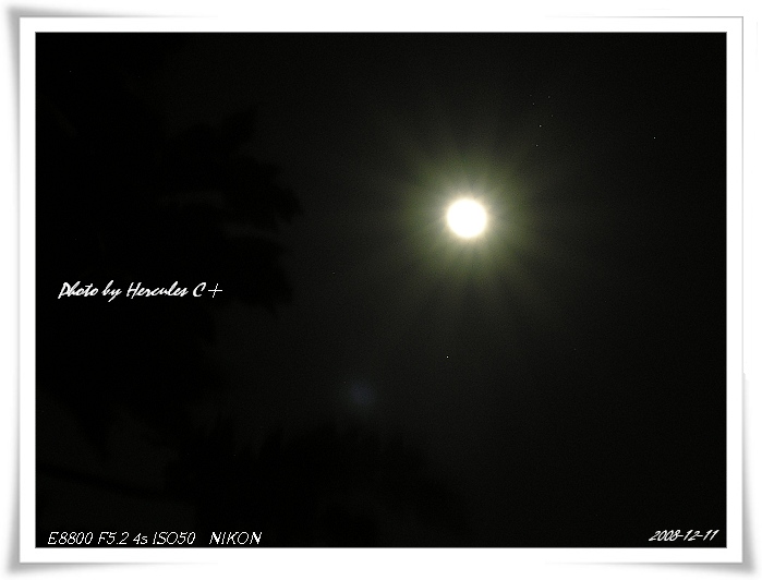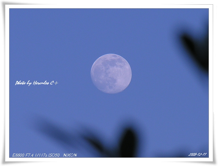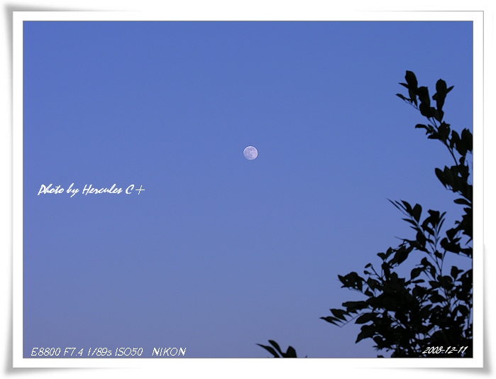 單拍月球已經很久了 試試和景物的對照效果 (這是棵月橘的頂梢)